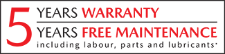 *5 years manufacturer warranty, or first 100,000km whichever comes first.